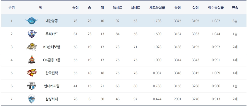 2021~2022 도드람 V리그 남자부 배구팀은 총 7개 팀이 격돌하게 됩니다. 지난 시즌에는 대한항공이 정규시즌 우승과 더불어 챔피언결정전을 동시에 우승하며 왕좌에 올랐습니다. 이번 시즌에서 과연 대한항공이 또 우승을 거머쥘지 새로운 팀이 왕좌에 오를지 기대됩니다.