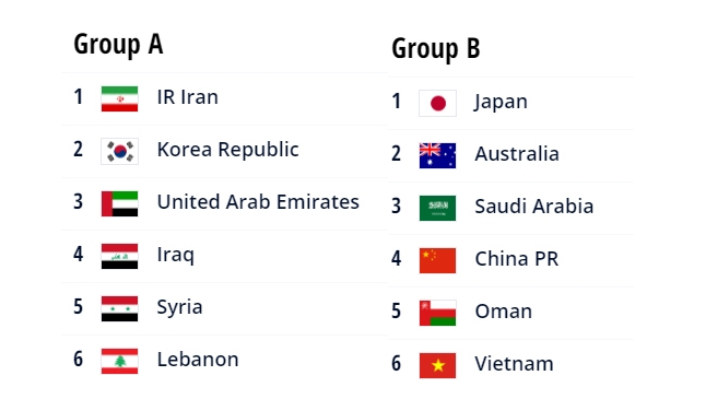 2022 카타르 월드컵 아시아 최종예선 조별 순위