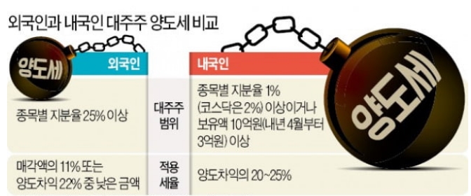 주식 양도세 과세 대상 10억원에서 3억원으로 인하