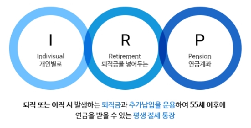개인형 퇴직연금 IRP는 근로자가 퇴직금을 자기 명의의 퇴직계좌에 적립해 연금 등 노후자금으로 활용할 수 있게 한 제도입니다. 근로자가 이직하거나 조기 퇴직했을 때 퇴직금을 바로 사용하지 않고 입금해 은퇴할 때까지 보관 및 운용할 수 있도록 한 퇴직 전용계좌입니다.